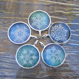 Just in time for winter! The winner of this giveaway will receive one of these 5 fabulous snowflake pendants. Each design features a shimmering snowflake on a background of vibrant blues and greens. Silver glitter adds a hint of sparkle. Pendant is silver-plated with a slight antique finish. Comes on an 18" sterling silver ball chain.